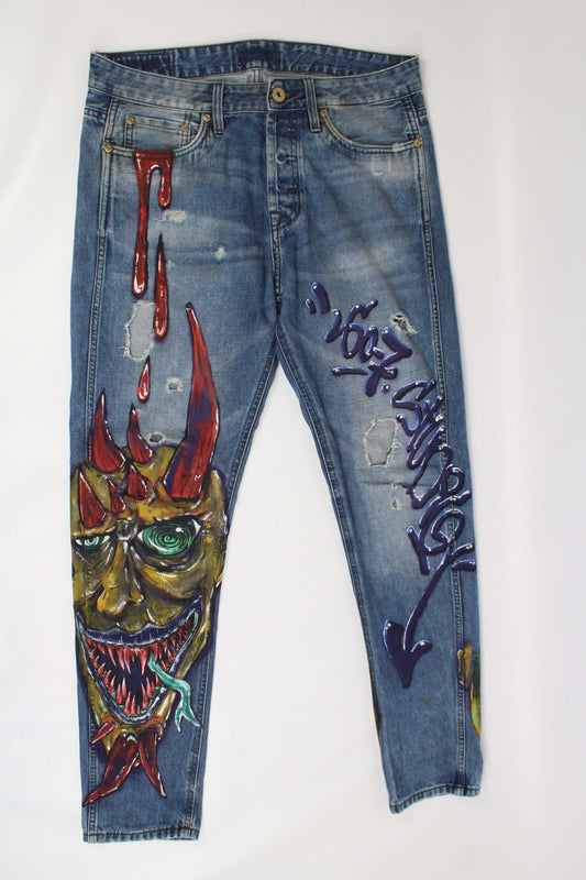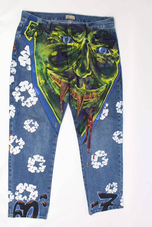 Denim Hand Painted Jeans Custom