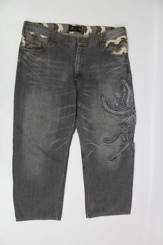 Evisu wurde 1991 in Osaka, Japan, von Hidehiko Yamane gegründet, der Denim einfach neu definieren wollte. Was als kleine Werkstatt mit einer Vintage-Nähmaschine begann, entwickelte sich schnell zu einer der einflussreichsten Denim-Marken der Welt. Der Name "Evisu" ist vom japanischen Gott des Wohlstands, Ebisu, inspiriert – ein Zeichen für Glück und Reichtum. Anfangs war jede einzelne Jeans von Hand gefertigt, und der berühmte Seagull-Print wurde mit einer speziellen Technik per Hand aufgemalt. Dieses handwerkliche Detail machte Evisu von Beginn an einzigartig und sorgte dafür, dass die Marke sich einen festen Platz in der Streetwear-Welt eroberte.