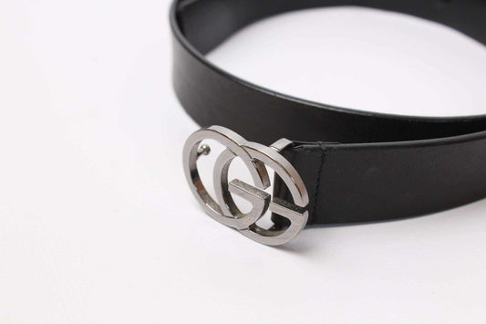 AusverkauftGUCCI Black Leather Belt with Silver "GG"