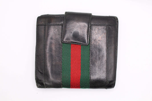 GUCCI Leather Portemonnaie Black with Green/Red Stripes